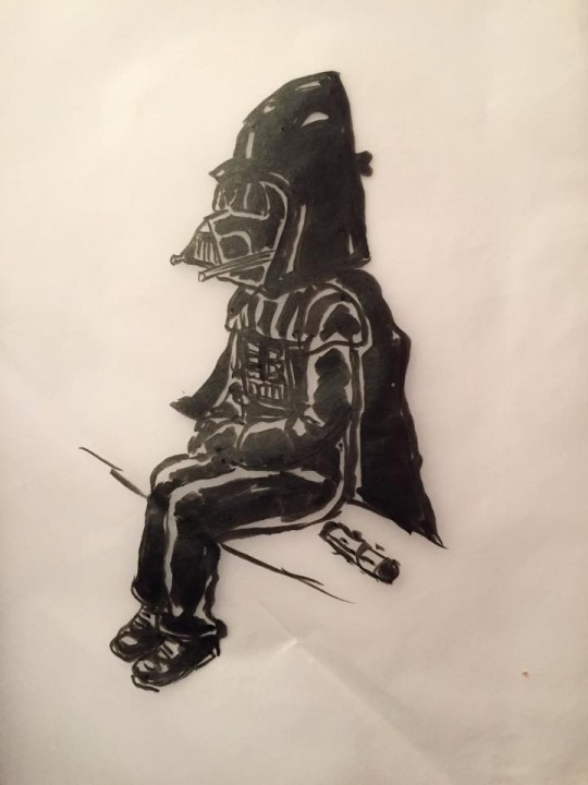Our eyes, and light sabers lit up when we saw this rendering of Claire O’Brien’s son dressed as Darth Vader. O’Brien is an aspiring author and illustrator. See more of her work, here.
